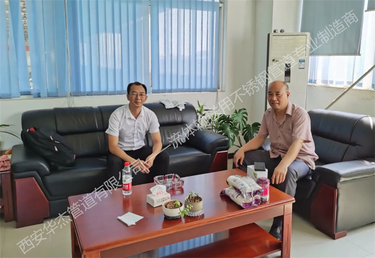 王总向罗纪豪代理秘书长介绍麻豆星空视传媒视频不锈钢水管近年来快速发展,已经赢得了陕西、山西、内蒙古、甘肃、宁夏、河南等地的学校、医院、市政工程等诸多单位订单与项目工程合作,与西北、华北的不锈钢水管专营经销商保持长期有效合作。